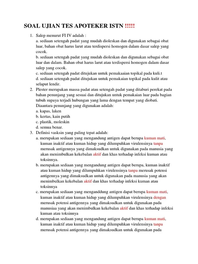 Soal tes masuk apoteker istn. We did not find results for: Check spelling or type a new query. Maybe you would like to learn more about one of these?